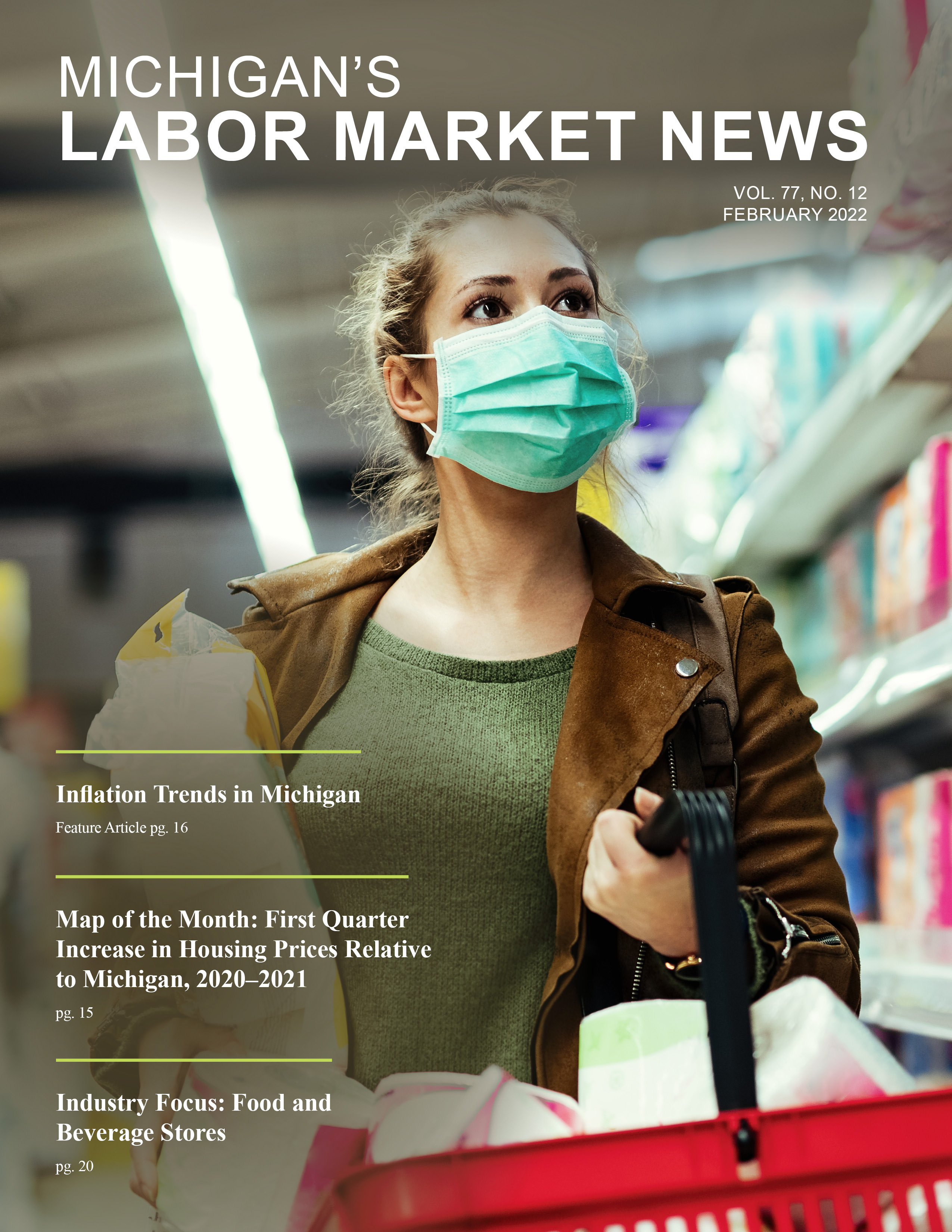 January 2022This month's issue features an article on inflation trends in Michigan, a Map of the Month that displays national housing price trends relative to Michigan, and an Industry Focus that spotlights Food and beverage stores.