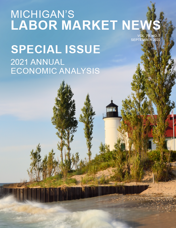 September 2022This month’s issue of delivers our Annual Economic Report for 2021. The different sections of the report describe recent trends in the labor force, industry jobs, wages, projections, and the state’s population. These indicators show how Michigan has recovered since the economic shocks of the COVID-19 pandemic, and provide some insight into how Michigan’s population and labor market could develop over the coming months and years.