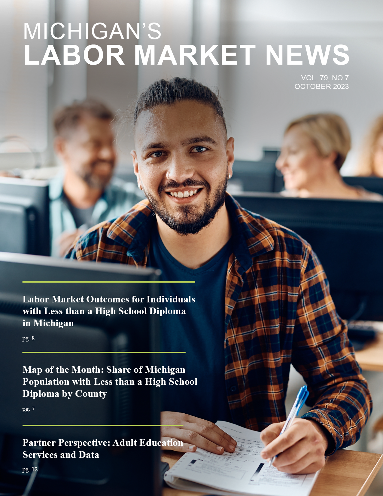 October 2023This month's issue features labor market outcomes for individuals with less than a high school diploma, a labor market update for the Macomb/St. Clair Michigan Works! region, a Partner Perspective on Michigan adult education services, and the latest labor force and industry information for Michigan.