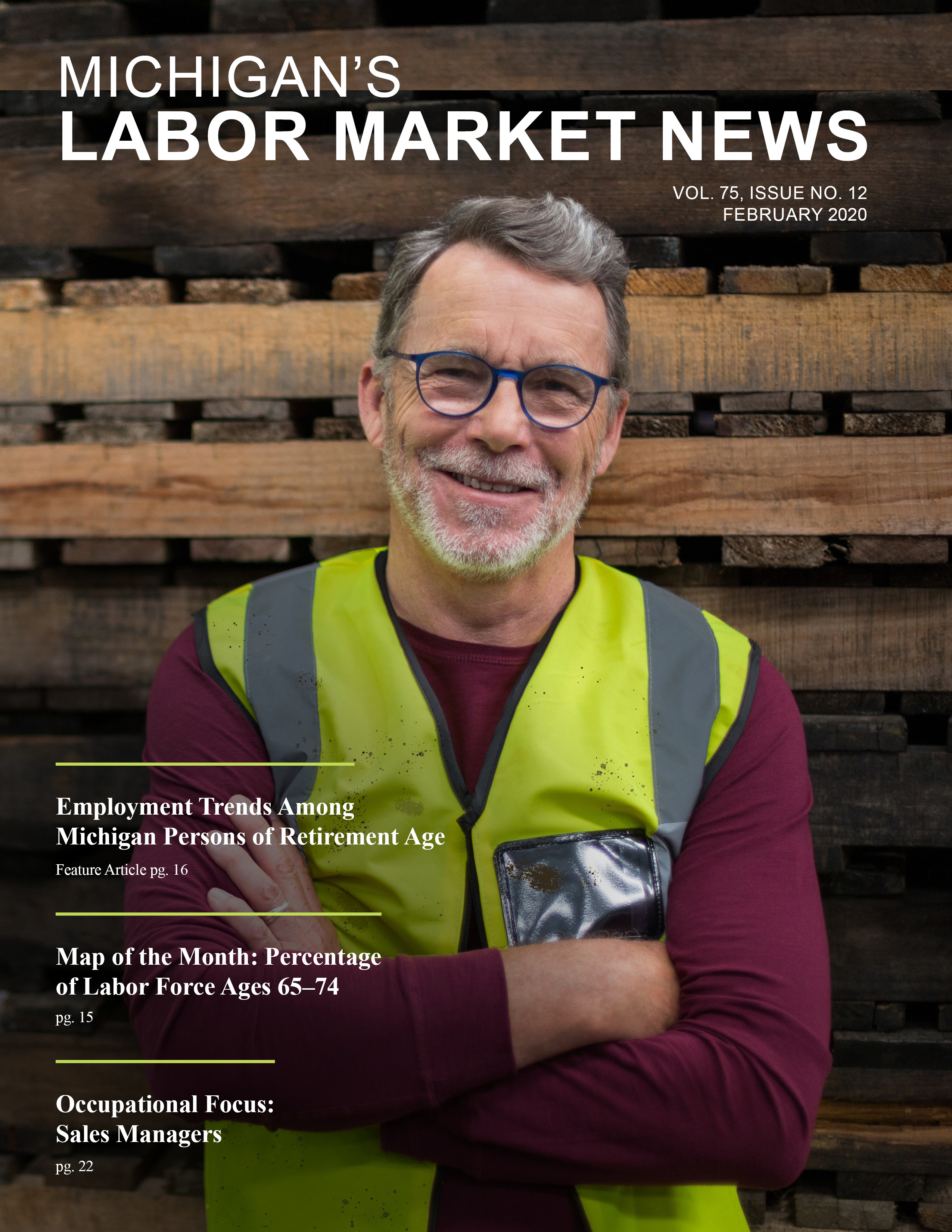 February 2020This month's issue features an article on Employment Trends Among Michigan Persons of Retirement Age and a Map of the Month that shows the Percentage of Labor Force Ages 65–74.