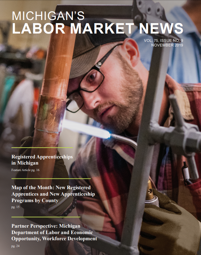 November 2019This month's issue features an article on Registered Apprenticeships in Michigan and a Map of the Month that shows New Registered Apprentices and New Apprenticeship Programs by County.